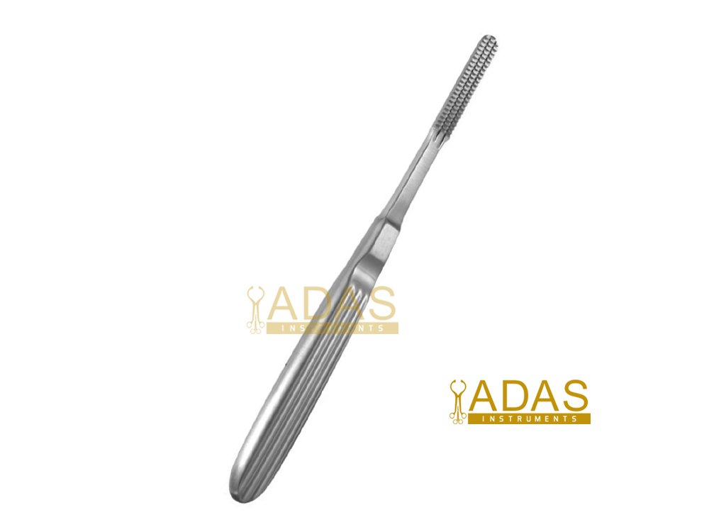 Achieve precise smoothing and contouring of the nasal dorsum with the Maltz Nasal Rasp (7.5mm Wide) from Adas Instruments. This specialized Rhinoplasty Bone File features a single-action cut for effective bone reduction during nasal reshaping procedures. Crafted from Premium German Stainless Steel.